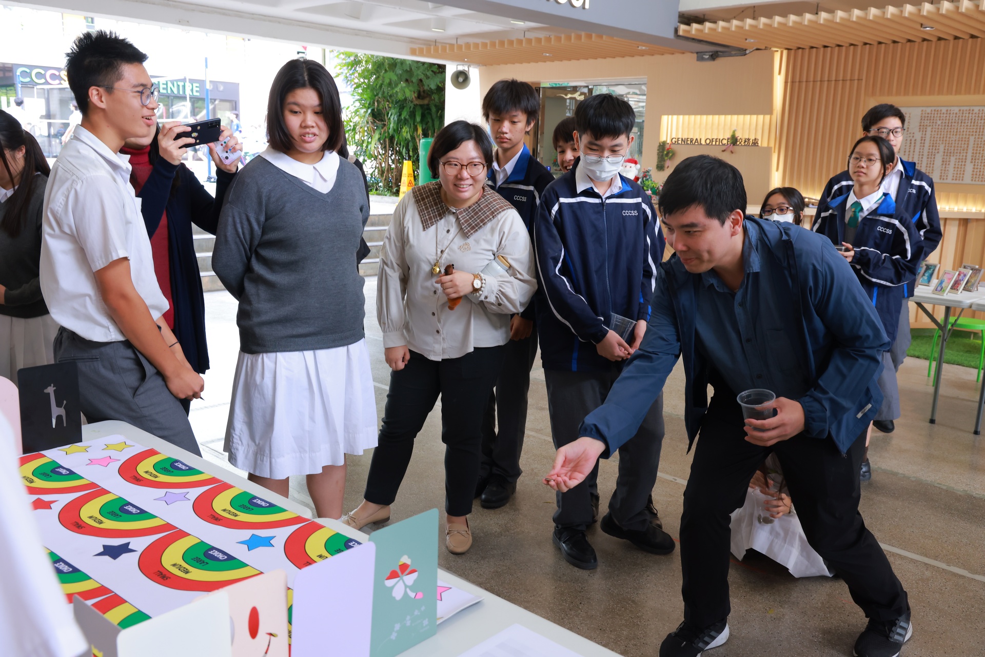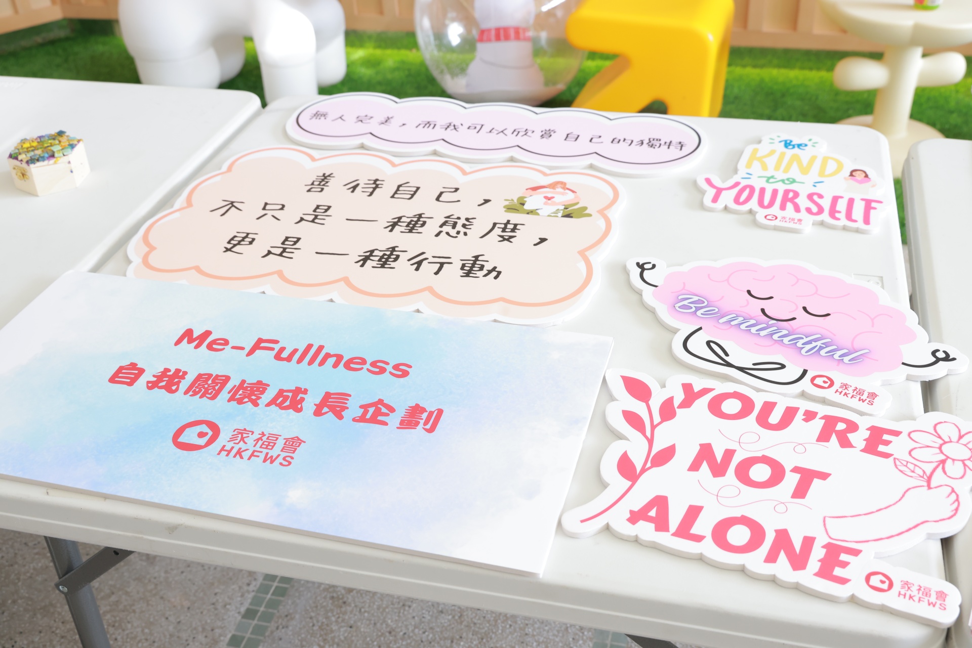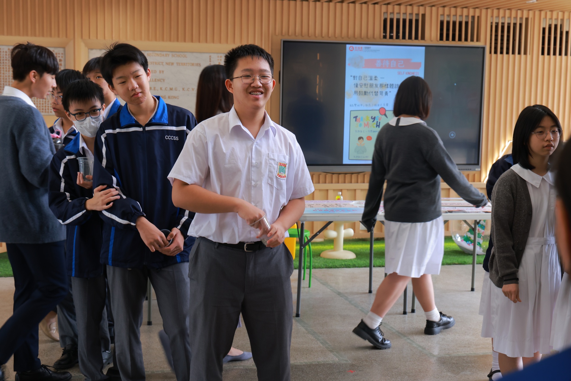 「自我关怀推广大使训练计划」为本校活动节的其中一项活动。这天,一班自我关怀推广大使于午间摆设摊位活动,除了展示他们于活动中设计的艺术品外,更借此宣扬自我关怀的重要性。同场亦设有静观挑战站,让同学借着静观训练,提升自己对精神健康的觉察。当天人龙络绎不绝,师生一同渡过了一段疗愈心灵的午后时光。